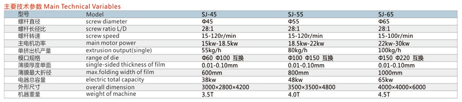 SJ-75、90、105、120系列聚乙烯吹膜機組